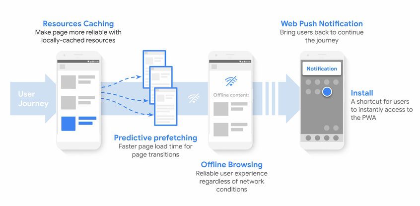 - A decrease in loading times after the app has been installed, thanks to caching with service workers, along with saving precious bandwidth and time. PWAs have near-instantaneous loading (from the second visit).